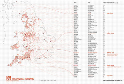 The urgency is the excessive amount of waste produced specifically from dairy cows and the improper recycling of food that proves to be harmful environmentally. Anaerobic digestion helps farmers manage waste while benefiting from bio-gas fuel generated from extracting methane for electricity. A localised material supply strategy was envisioned to locate fibrous digestate.